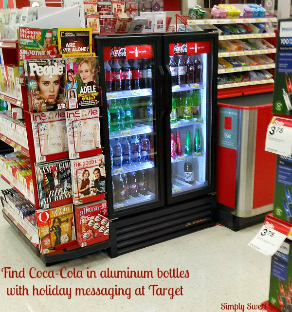You can find Coca-Cola in aluminum bottles with special holiday messaging at Target. Check out the cooler near the check out stands!