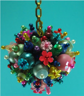 Here’s somethig a little different. The maker calls it a Bright Colorful Beaded Ball and Chain Christmas Ornament. It’s defintely not your average Christmas ball. slvilov sells them on etsy. I love the bright colors and funky design.