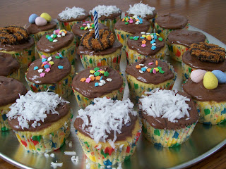 For the other cupcakes, I used shredded coconut, candy sprinkles, and little Cadbury Mini Eggs.