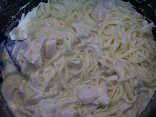 Directions: Cook chicken in the skillet or oven, then set aside. (If you’re in a hurry, you can used can chicken breast.) Cook spaghetti completely, and drain water. Add milk, sour cream, soup, and butter. Mix together and add cheese, seasonings, and chicken. Heat throughout. (Double each ingredient for a large batch.)
