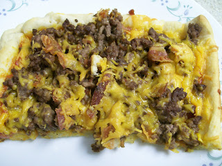 Here’s a bacon cheeseburger pizza that I made with a slight twist that I think adults and kids will like. My only regret was that I didn’t have enough cheese to top it off as I normaly would, but it was still quite tasty.