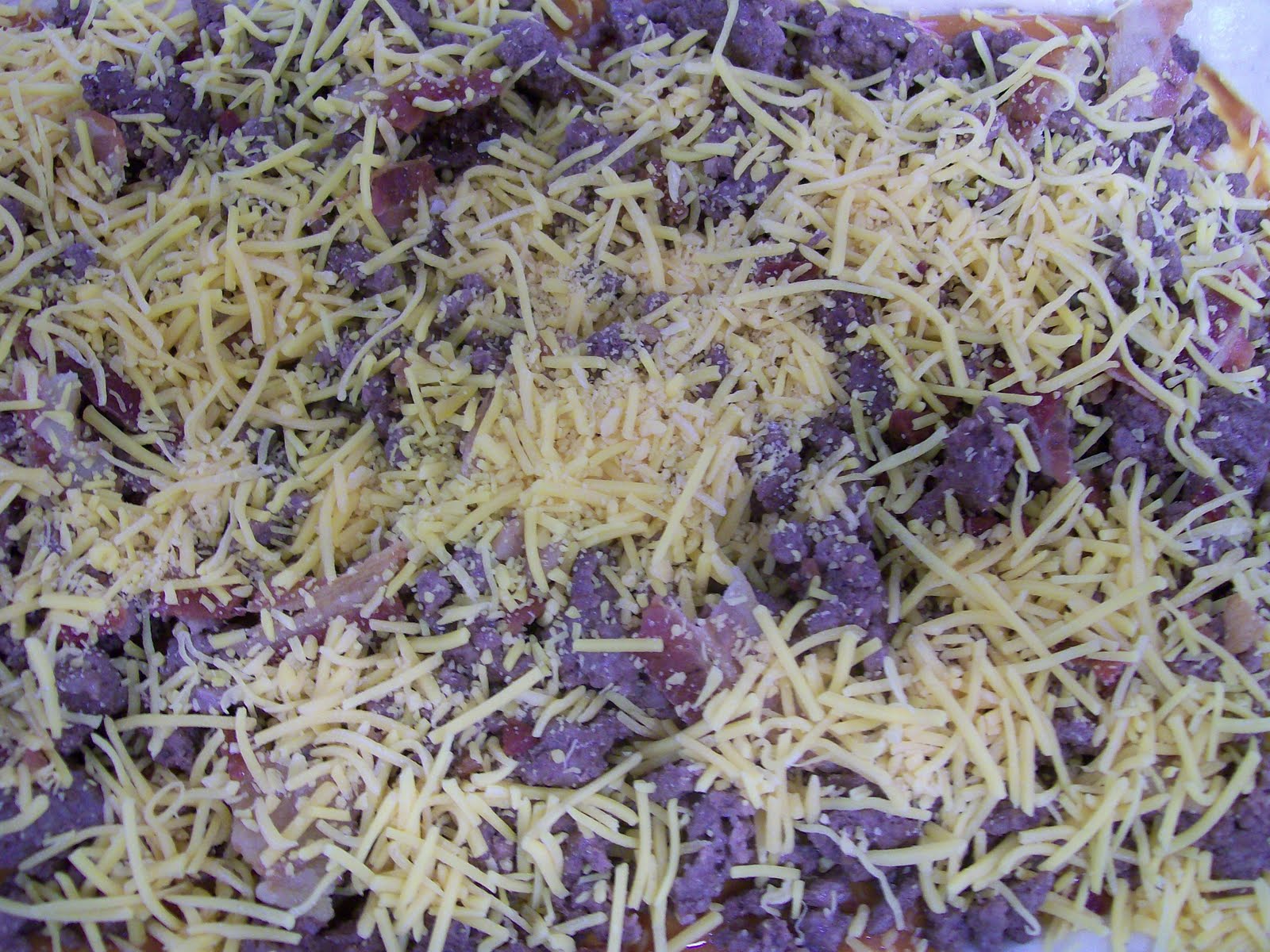 Directions: Brown your hamburger meat and cook bacon in a skillet on the stove. (To save time, I use precooked bacon. Or you can also use bacon bits.) Drain the fat and set aside. Roll out your pizza dough on a pizza pan or baking dish. If you do any prebaking on your pizza crust, do it at this time. In a small bowl, mix together your ketchup and mustard. (I didn’t measure it out; I just started mixing until I got the consistency and amount I needed.) Spoon out your ketchup and mustard mixture on to crust. Next chop up your onion and tomato if using, and add all toppings to your pizza as desired. (I like to do a layer of cheese, followed by other toppings, and then another layer of cheese on top.) Bake pizza as directed on crust package, and serve!