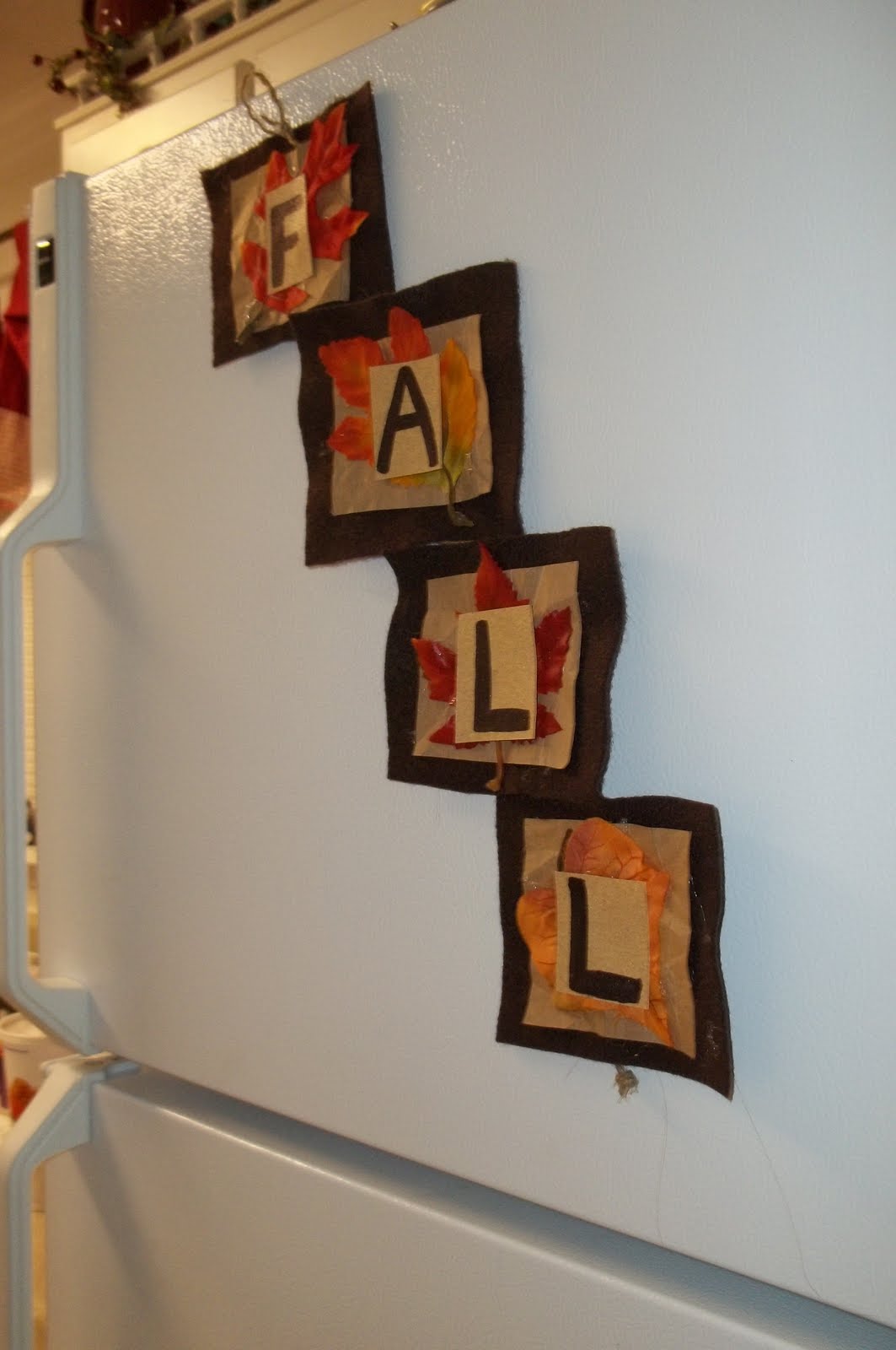I love fall crafts and decor! I made this shabby style fall craft the other day. I guess you’d call it a wall hanging (even though I’ve hung it on the fridge). But the concept behind my little fall letters could also be applied to banners, cards, place mats and more.