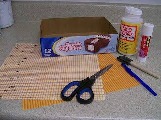 We were grocery shopping the other day when my husband picked up a big box of cupcakes. This was the same weekend that I broke out all the Halloween decorations for outside.  I find that if we don’t keep snacks like cookies and cakes out on the counter, they will  be forgotten in the cabinet and will eventually have to be thrown out. I was deciding which bowl or jar to the put the cupcakes in  I got inspired to create this cute little treat box.