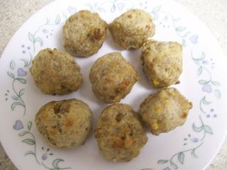Directions: Combine and shape into 1-inch balls. Preheat oven to 350 degrees. Bake for 20 minutes. (Can be frozen and baked as needed)
