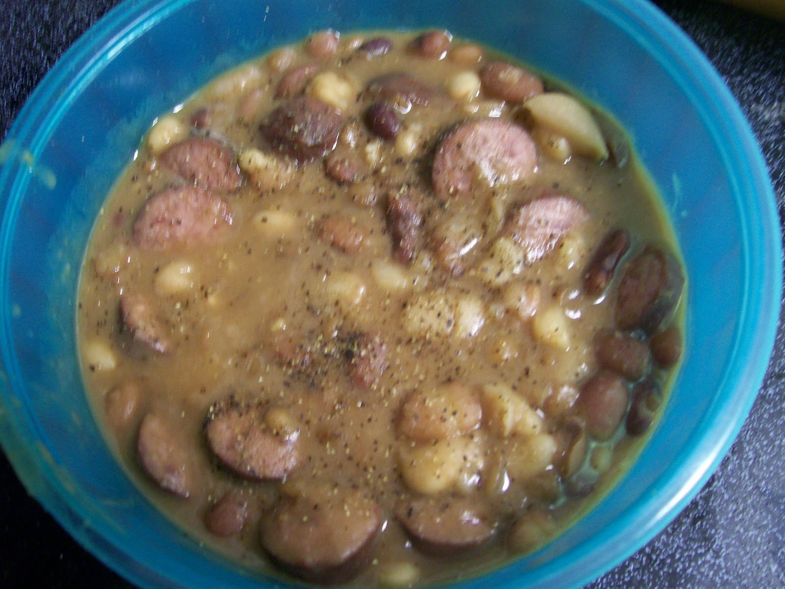 To spice this recipe up, the Hurst’s package recommends you add 1 cup of chopped onion, one 15 oz. can of diced or stewed tomatoes, 1 tsp chili powder, juice of one lemon, and a clove of minced garlic about 30 minutes before cooking is complete. Growing up, we never had all that stuff in our bean soup, but I’m sure it’s quite tasty and flavorful.
