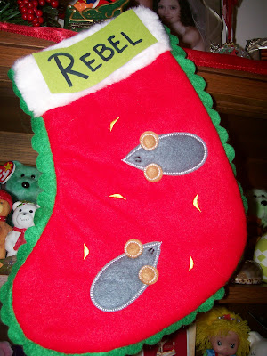 And here’s Dixie Belle. She supervised the decorating, though she’s generally more of a “hands-on” worker. She and Rebel are also our resident taste testers, and apparantly fake trees are pretty delicious!