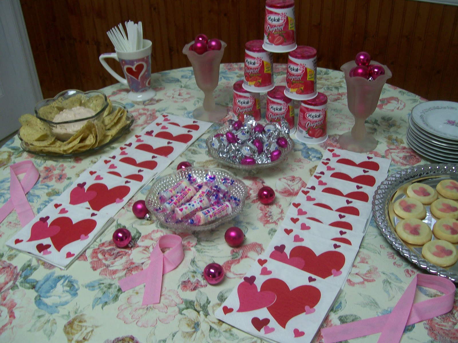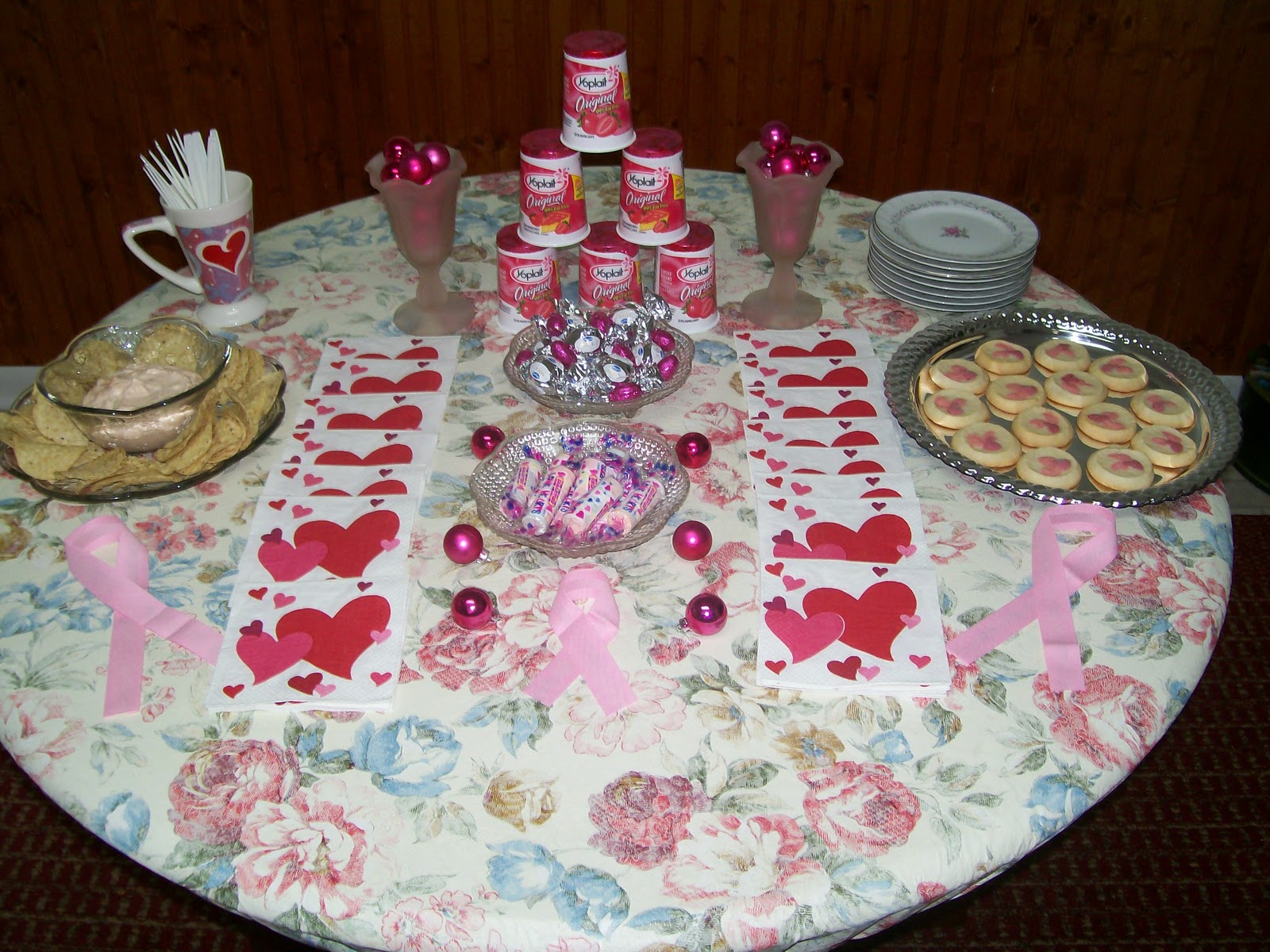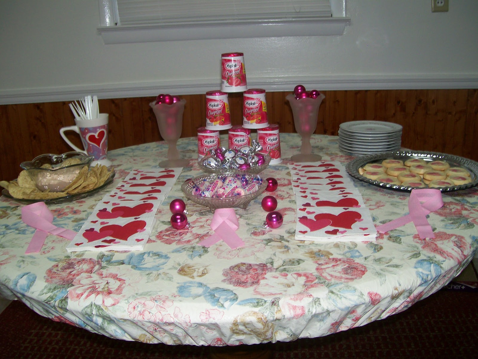 And keeping with the pink theme, I served some pink creamy salsa dip, pink candies, and some pink cookies from Pillsbury, along side the pink Yoplait yogurt (of course!).
