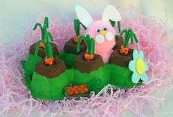 INSERT 2 cookies into 1 side of each dish to make the “bunny’s ears, then decorate with candies, licorice and decorating icings and gels as desired for the faces.
